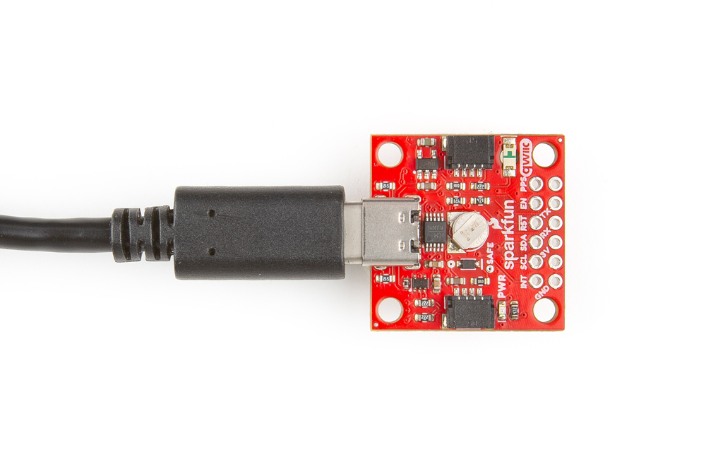 For the example below, I used a Qwiic capable RedBoard and associated USB cable. With that and a Qwiic cable, the assembly is very simple. Plug a Qwiic cable between the RedBoard and the GNSS board.