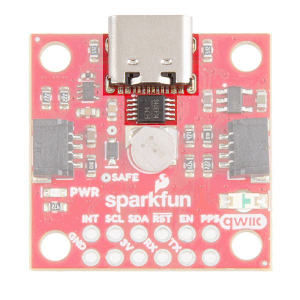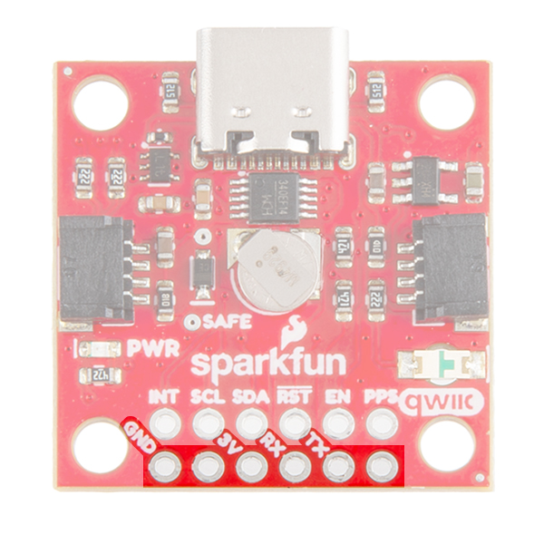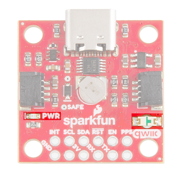 There's a single red power LED just above the Qwiic connector to indicate that the board is powered.